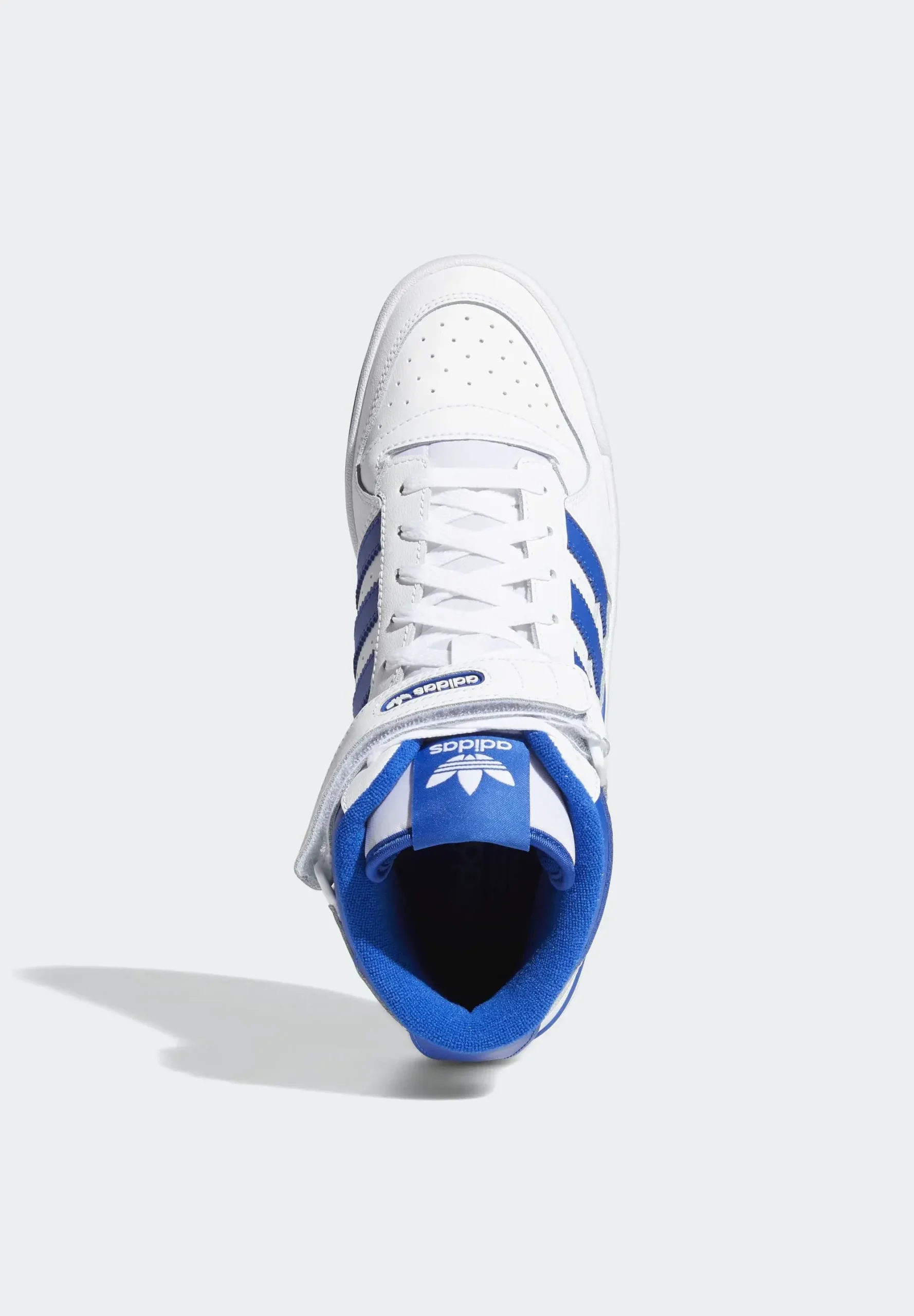 Eladó teljesen új, eredeti Adidas Forum Mid J sneaker, a márka egyik legikonikusabb kosárlabdás sziluettjében. Ez a modell a klasszikus sportos eleganciát képviseli: a tiszta fehér alapszínt mélykék (Royal Blue) részletek teszik teljessé, ami egyszerre ad retro és modern megjelenést.