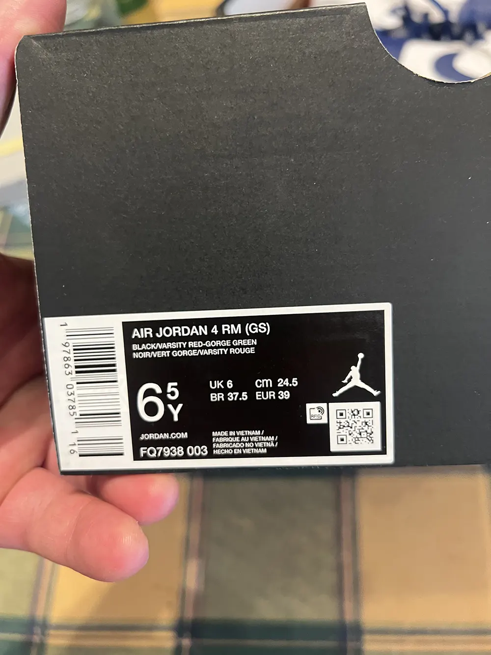 Air Jordan 4 RM (GS) – Black/Gorge Green-Varsity Red