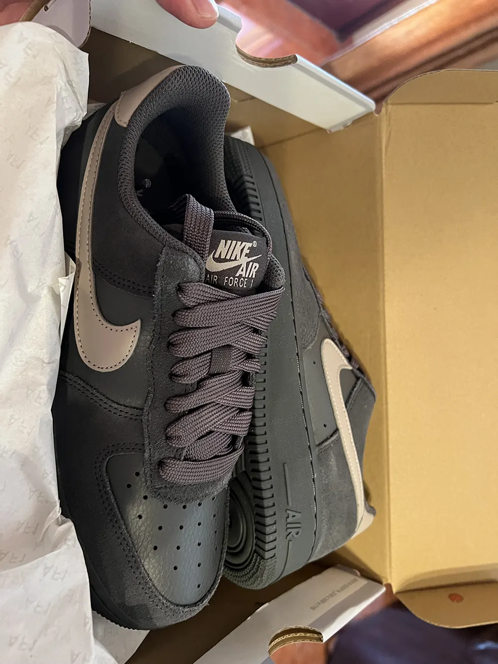 Eladó egy eredeti, különleges színösszeállítású Nike Air Force 1 Low sneaker. Ez a modell a klasszikus AF1 sziluettet ötvözi prémium anyaghasználattal és egy elegáns, földtónusú megjelenéssel.