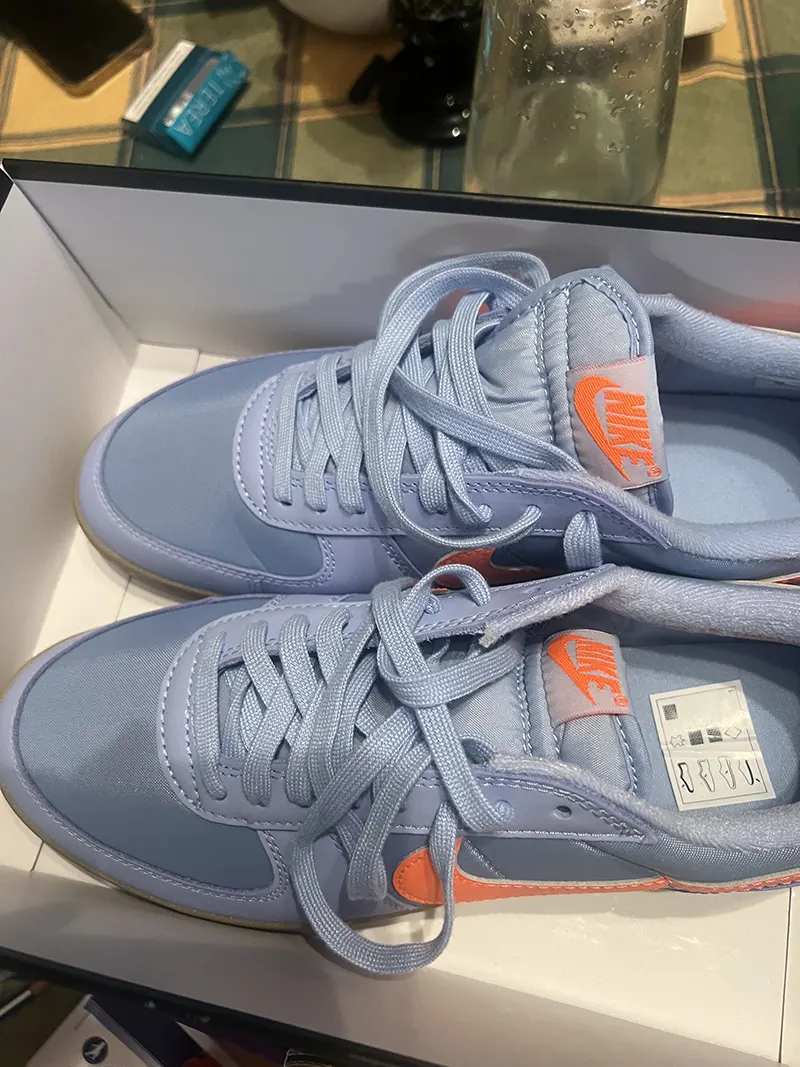 • Megjelenés: A felsőrész egy különleges, selymes fényű világoskék (Aluminum) árnyalatban pompázik, amit vibráló narancssárga Swoosh és nyelv-logó tör meg. Ez a színkombináció friss, nyárias és garantáltan feltűnő.